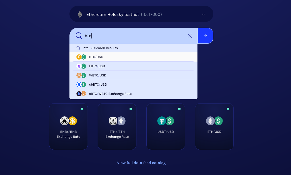 If you pick a data feed that is already active on the network, you will be taken to the data feed page directly. Otherwise, you will be taken to the activation page first. To experience the entire flow, we recommend picking a data feed that is not active.